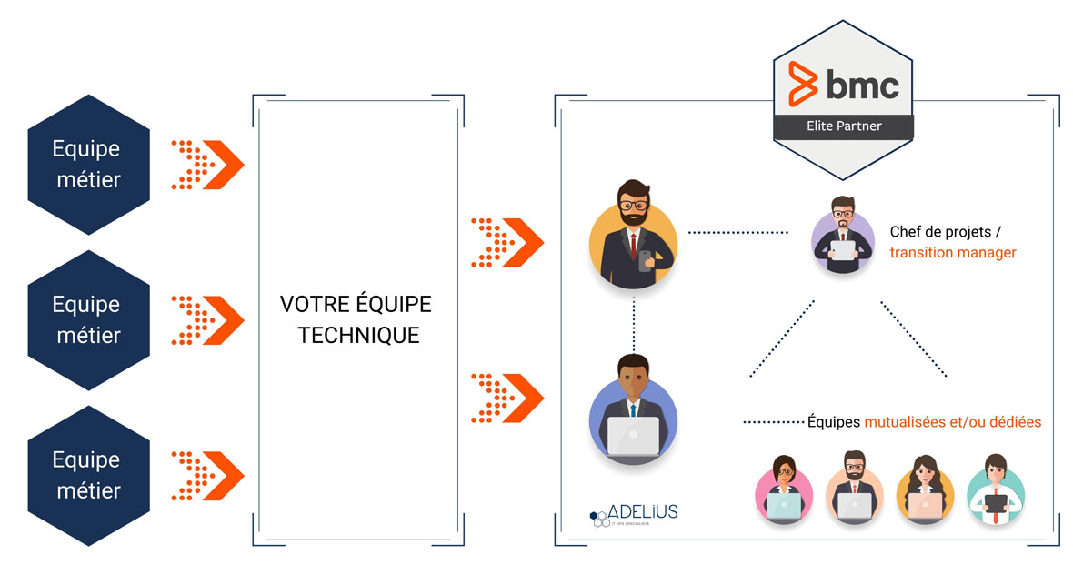 - La gouvernance : menée de manière technique et organisationnelle par un Service Delivery Manager dédié.